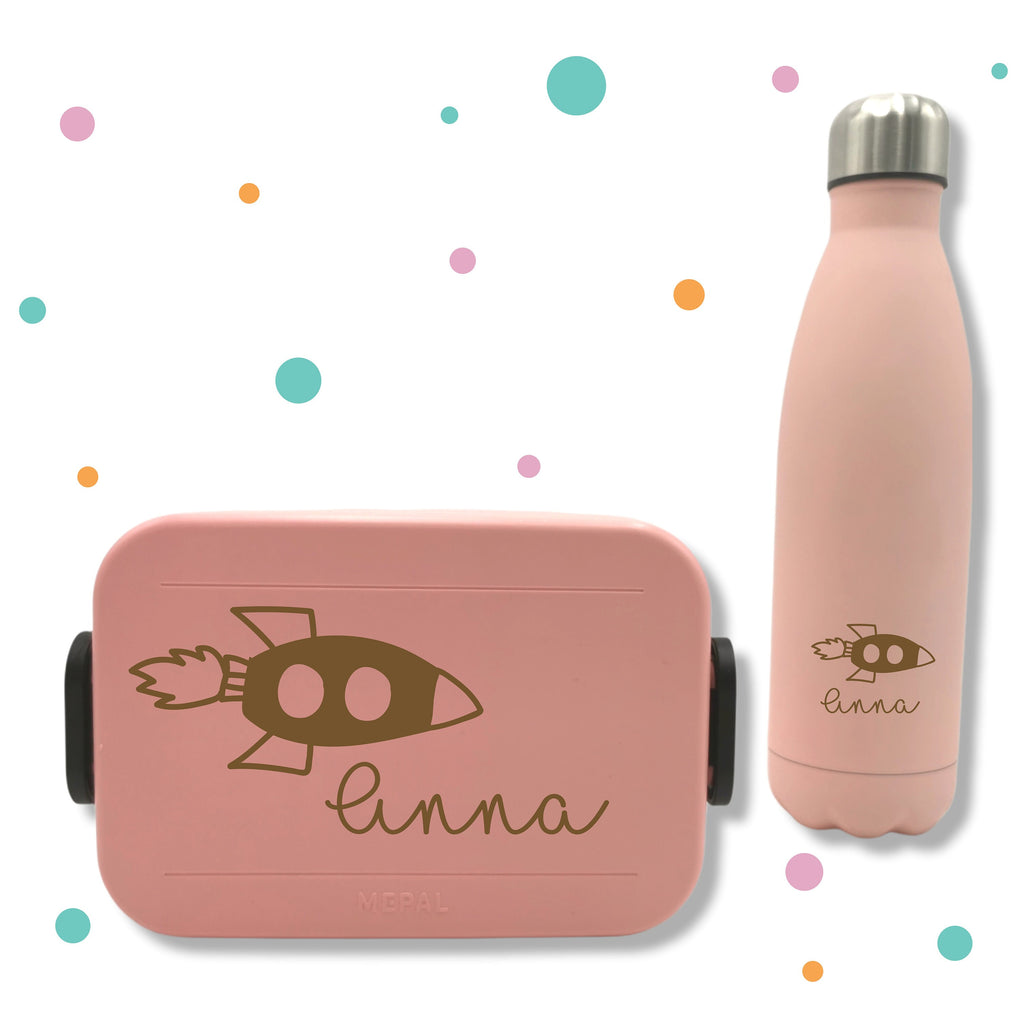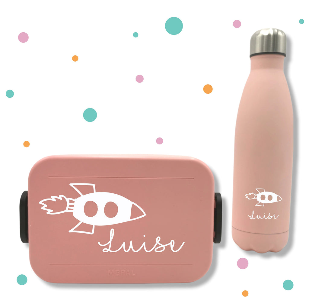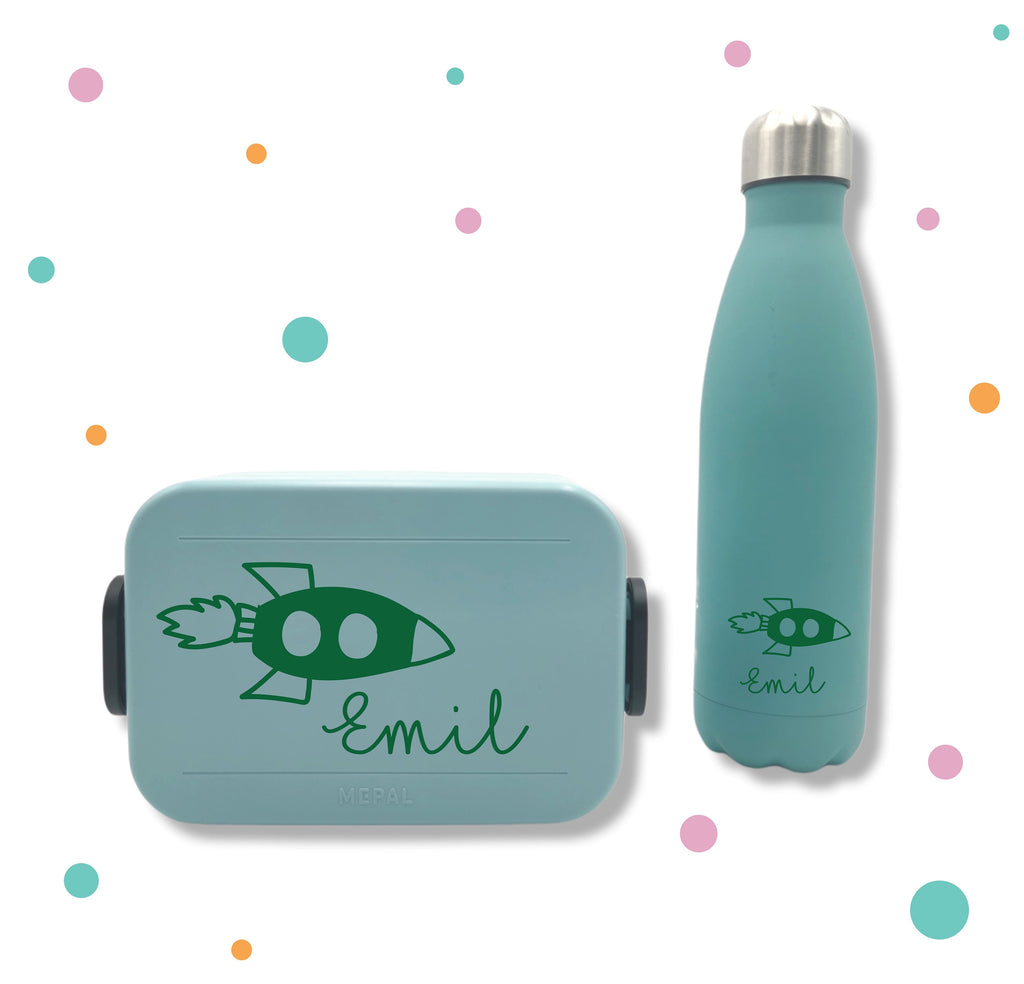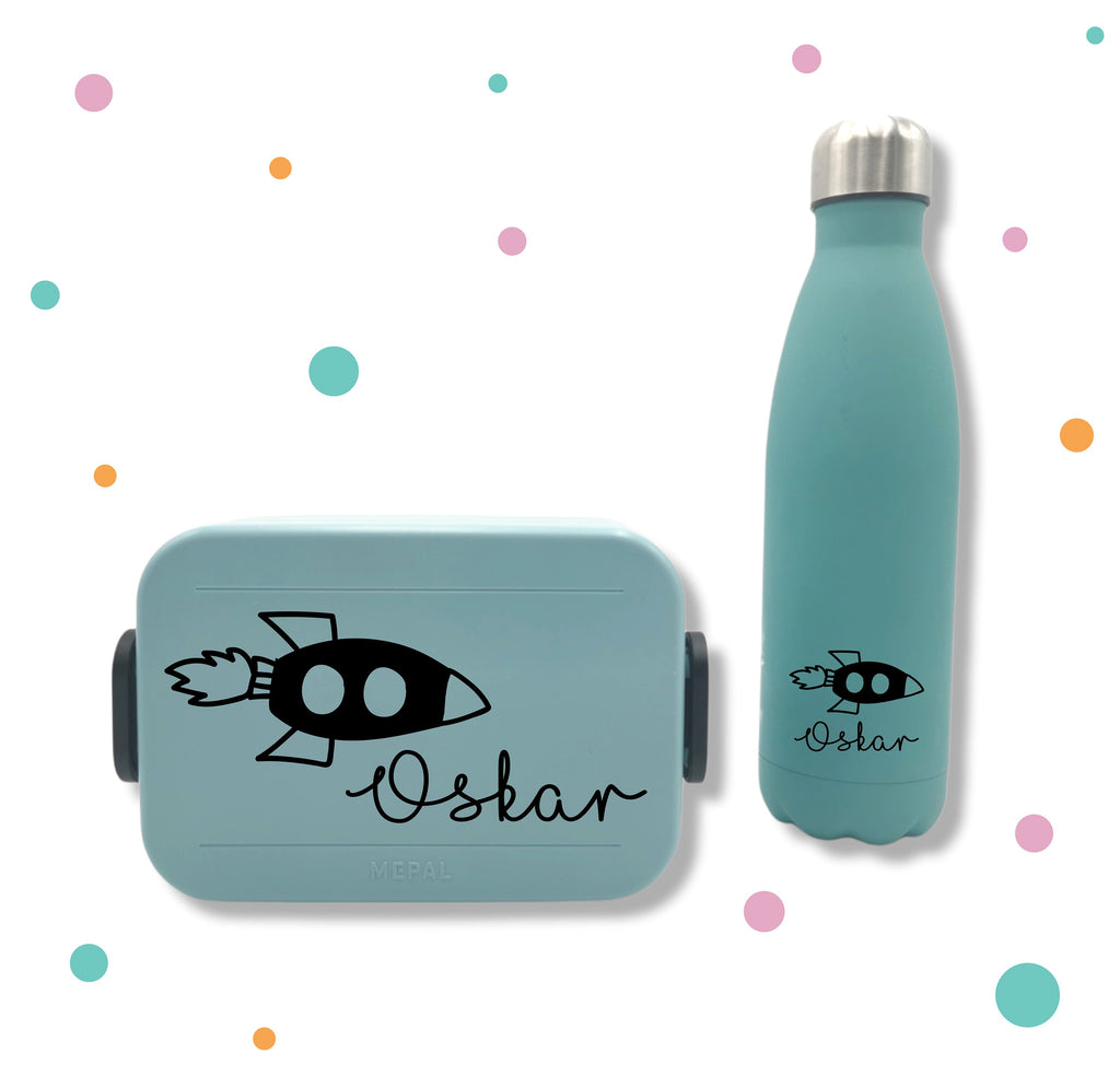 Aufkleber für Brotbox * mit Namen und Rakete * Wunschfarbe *