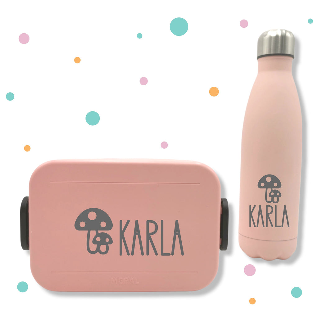 Brotboxaufkleber * Aufkleber für Brotbox * mit Namen und Fliegenpilz * Wunschfarbe *