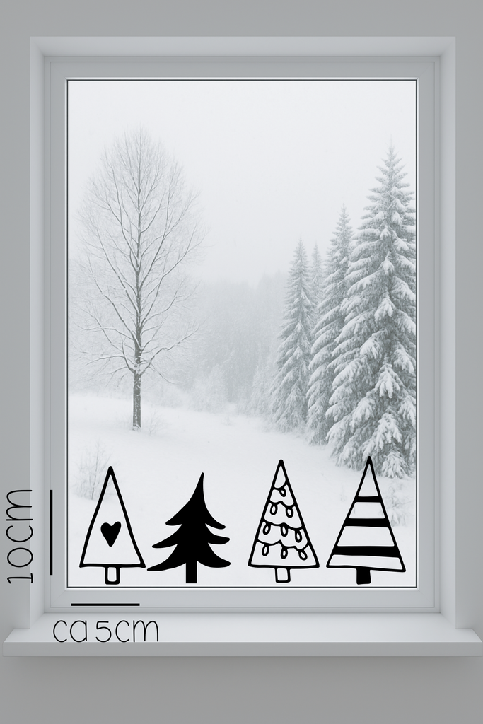 Hol dir Winterstimmung ans Fenster: Das 4-teilige Tannen-Set kombiniert vier unterschiedliche, handgezeichnete Baum-Motive – von schlicht bis verspielter Lichtergirlande. Das hochwertige Vinyl haftet sicher auf Glas, lässt sich ohne Rückstände wieder entfernen und ist für Innen und Außen geeignet. Ideal für Zuhause, Büro oder Schaufenster.