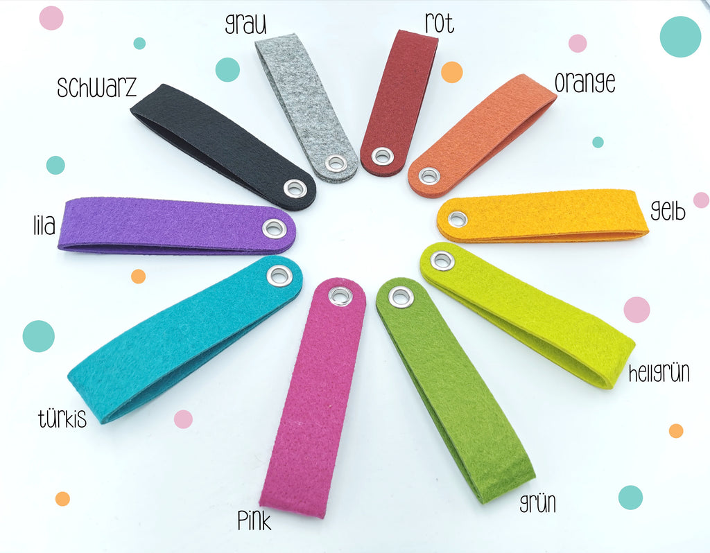 Dieser Schlüsselanhänger ist aus Filz und wird mit einem Schlüsselring geliefert. Auf Wunsch kannst du auch einen Karabiner dazubestellen.
